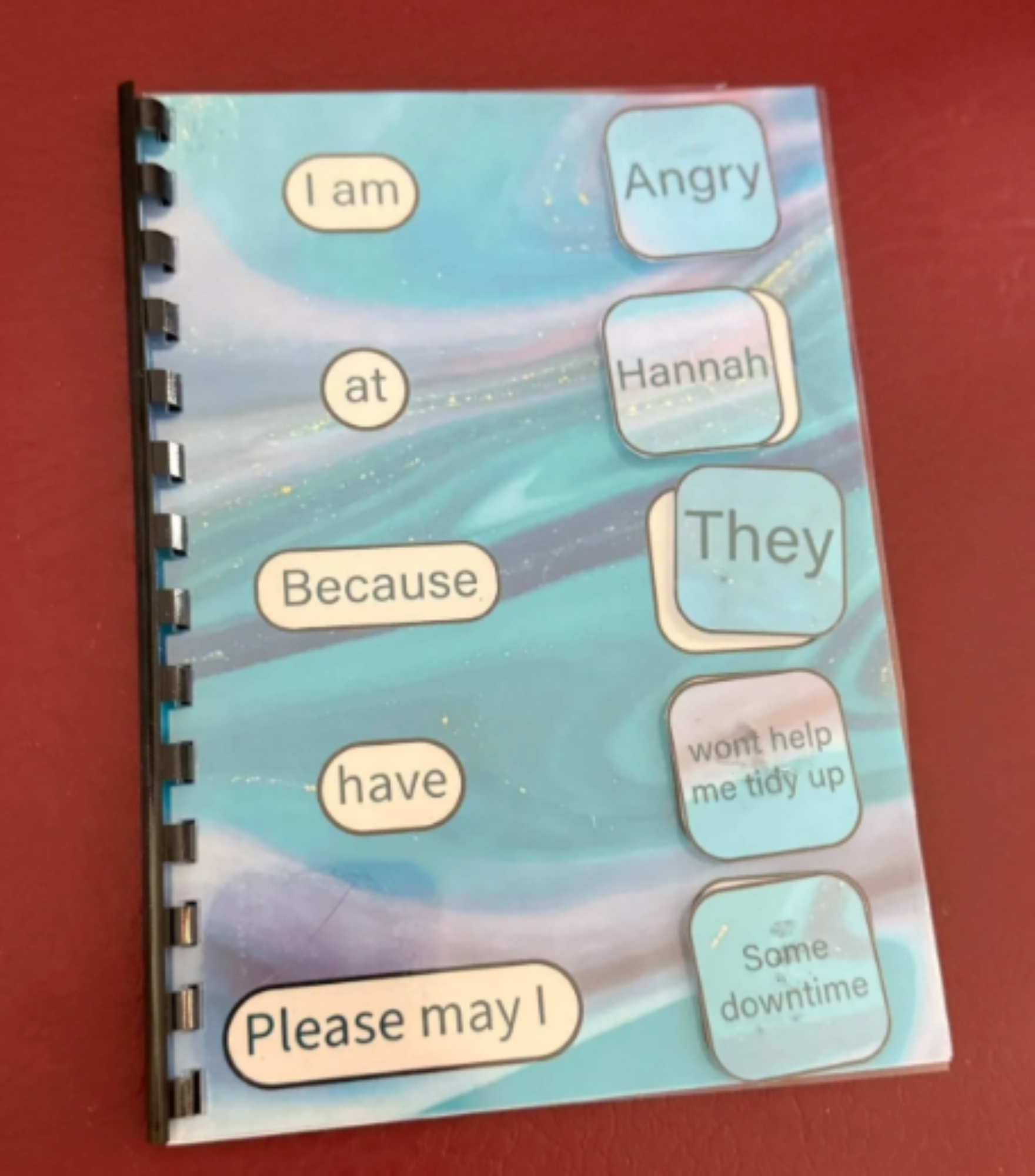 This Emotion and Communication Support Book is a practical visual tool designed to help children and individuals express their emotions, thoughts, and needs more easily. With simple, interchangeable word and picture options, users can build sentences to communicate how they feel and what they need in a clear and supportive way.