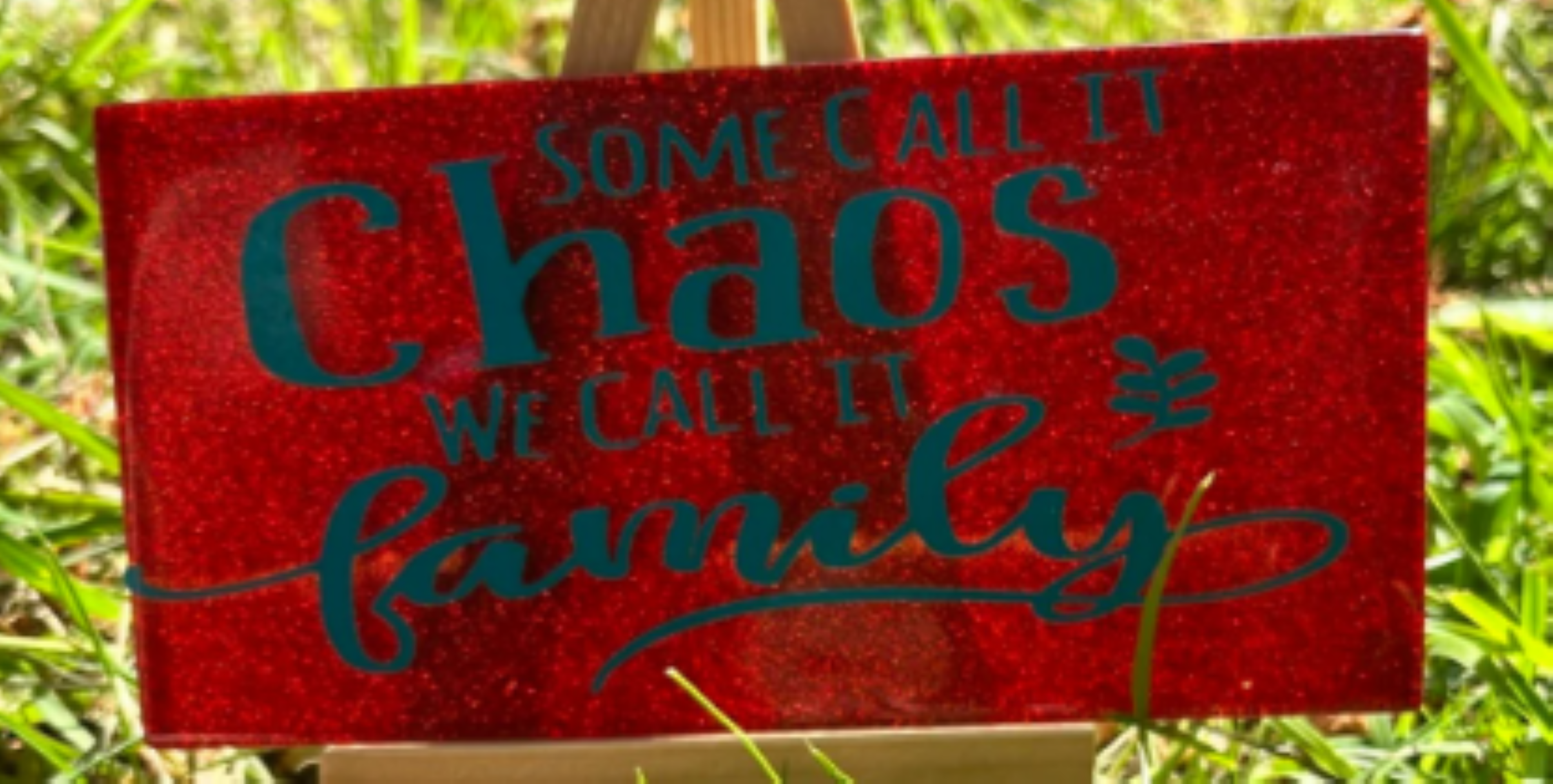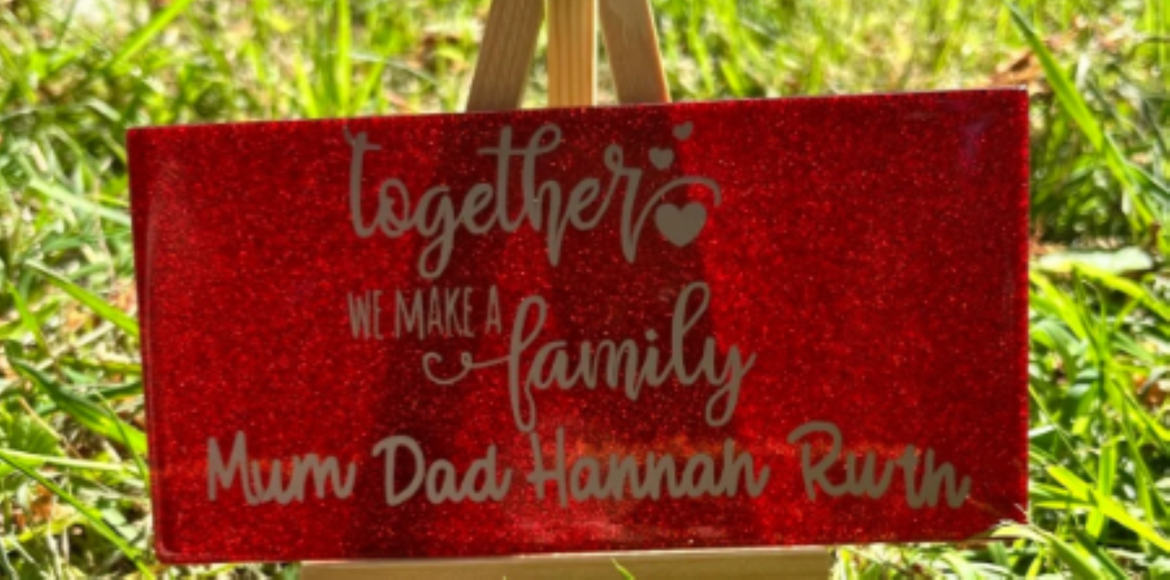 Bring warmth, love, and a touch of humour to your home with this beautiful glitter plaque. Set on a striking red, blue, white or pink glitter background with bold lettering, this decorative sign makes a perfect addition to any family space. Ideal as a gift for loved ones or a charming piece of home décor, it captures the joy and beautiful chaos that comes with family life.”